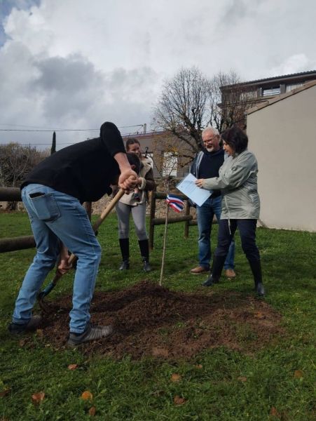 Pour le petit Gabriel, le choix a été fait par les parents de planter l'arbre sur un terrain communal. Et c'est accompagné de sa famille que nous avons mis en terre son cerisier.