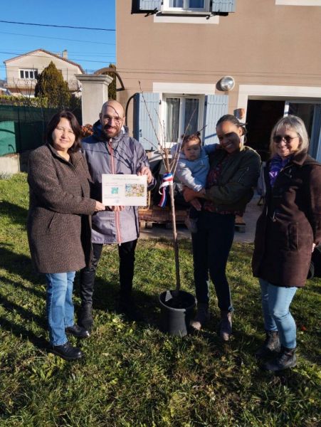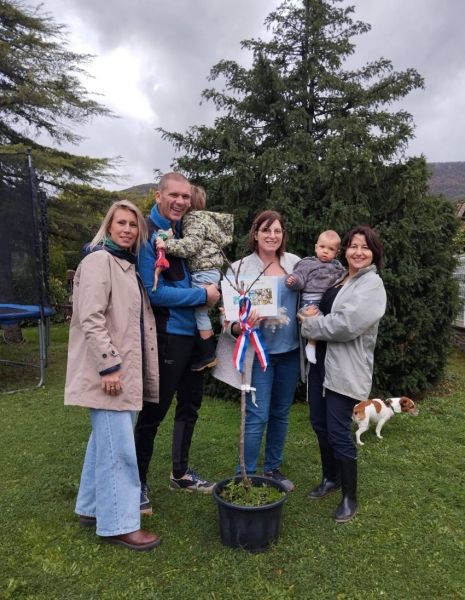 C'était donc au tour de Alma, Giulian, Dahlia, Lily et Imrân de recevoir leur arbre choisi par leurs parents, que Mme le Maire, Sandrine Chareyre accompagnée de plusieurs élus municipaux leur a remis à leur domicile !